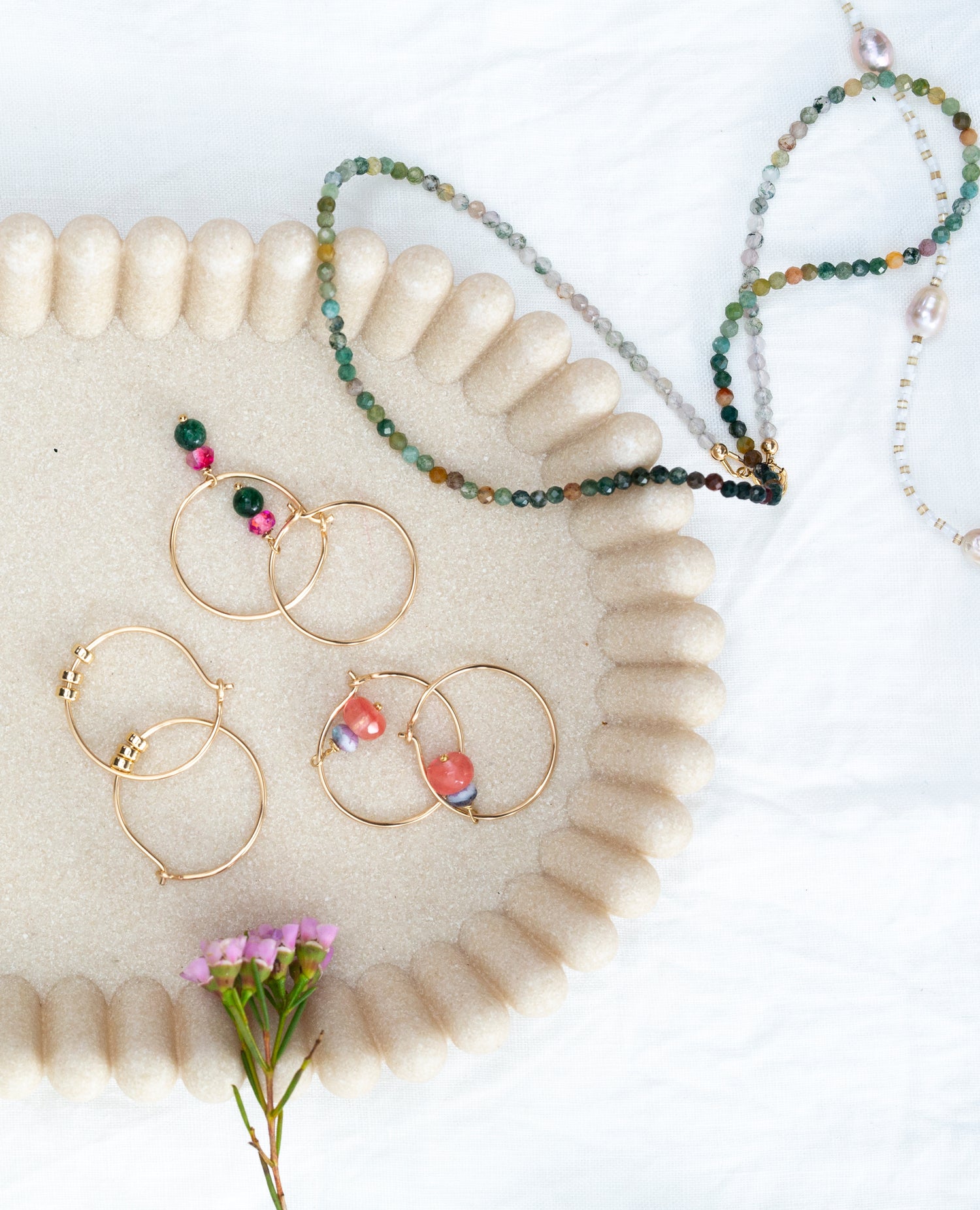 Quality is at the heart of J By Design. Jess carefully selects materials for their durability and beauty, ranging from the perfectly imperfect semi-precious stones to the flawlessly uniform Miyuki beads. Every piece is made with the intention of bringing long-lasting joy and refinement to your collection.