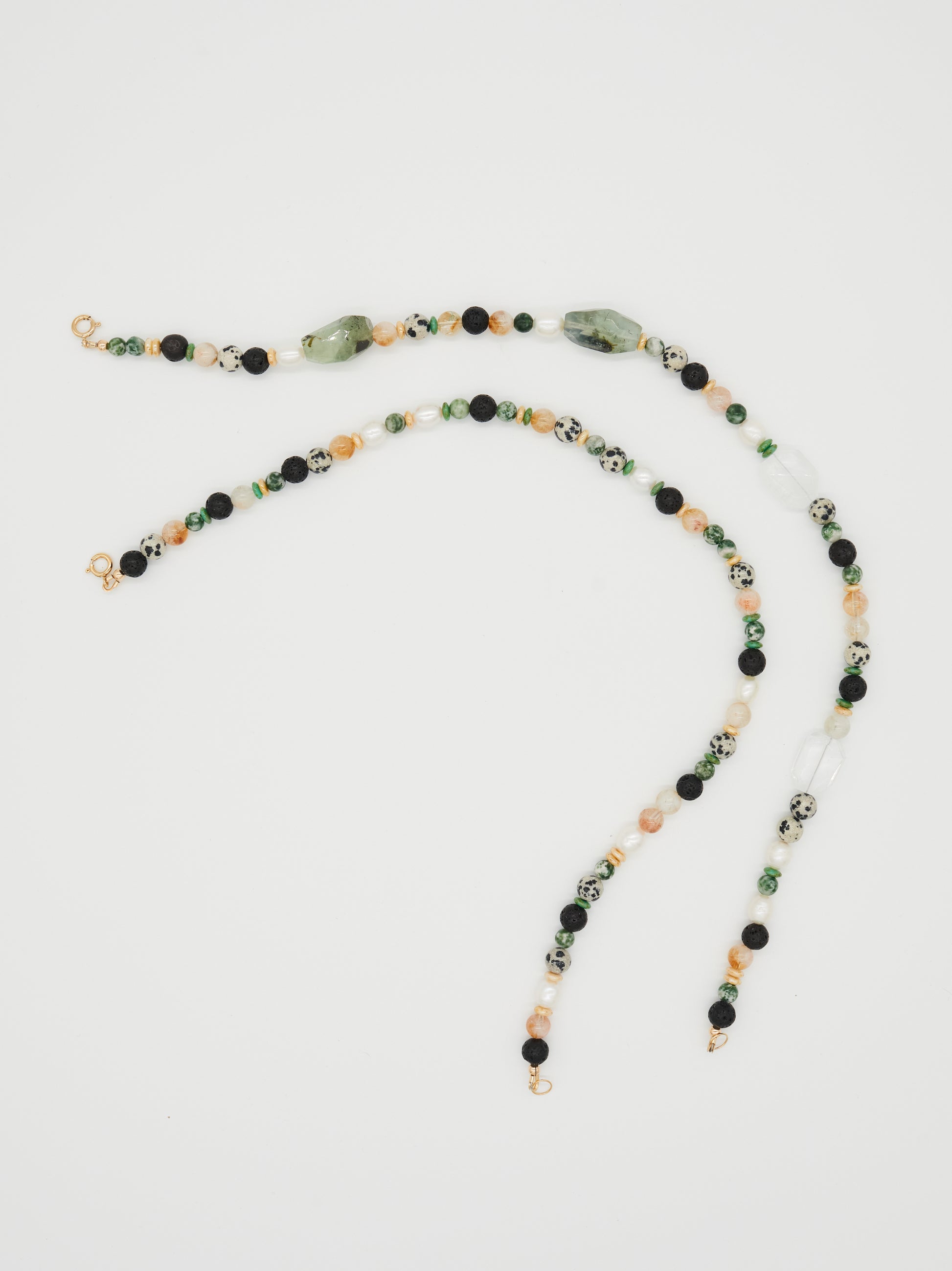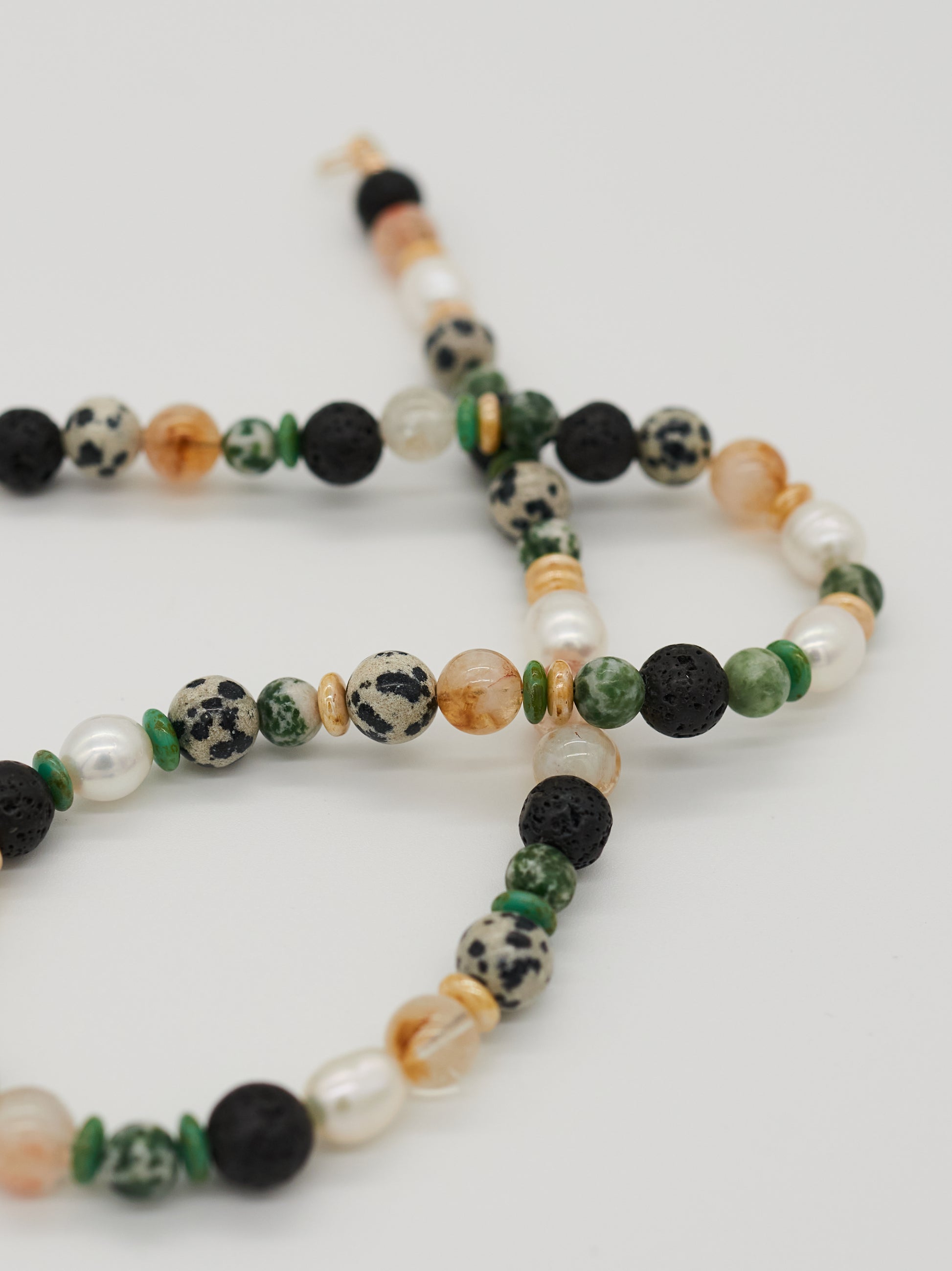 The Wonders Necklace brings together lava beads, Dalmatian jasper, green jasper, AB-grade Brazilian citrine, Czech glass, and freshwater pearls - each chosen for its unique surface, tone, and feel.